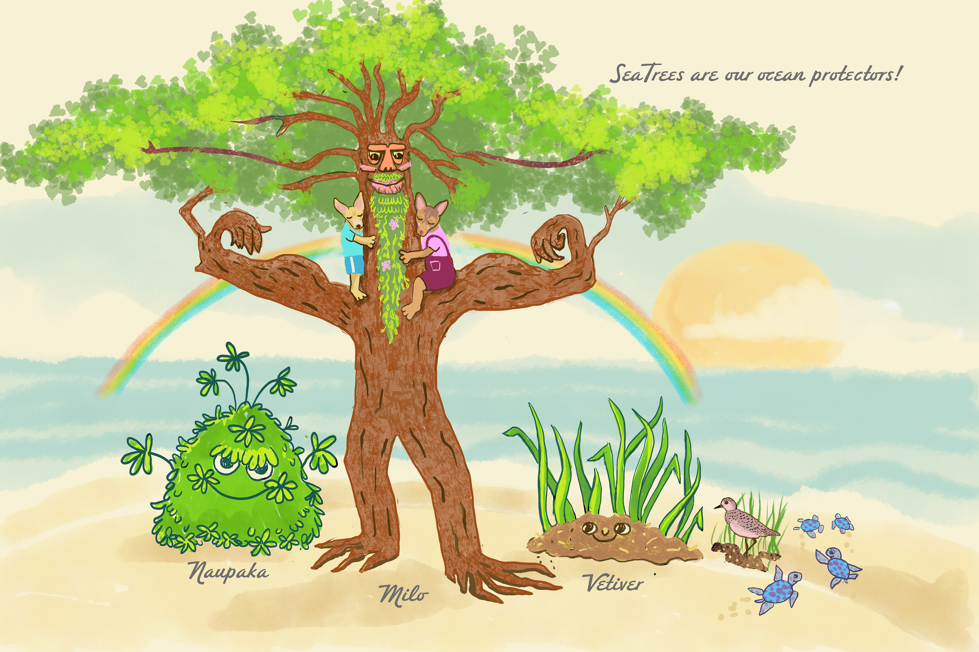With the help of Milo Tree, Naupaka Shrub, and Vetiver Grass—strong and heroic plants called "SeaTrees"—Iki and his friends learn how to protect the ocean. From planting SeaTrees to making eco-friendly choices on land, they show us that even small actions can make a big difference.